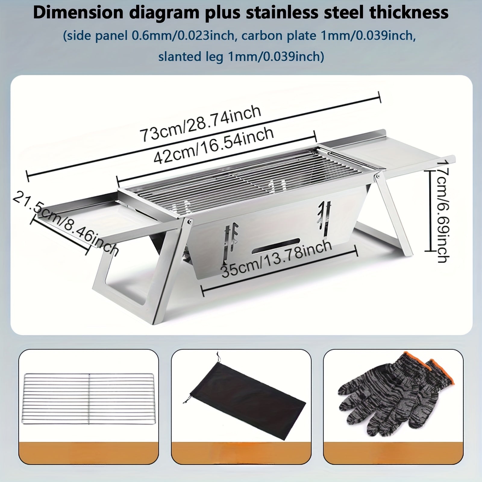 Folding Charcoal Grill, Portable Food Grade Stainless Steel Charcoal Grill