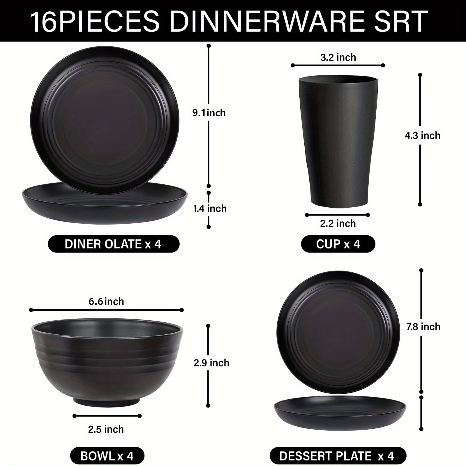 16pcs Wheat Straw Dinnerware Set - Unbreakable!!