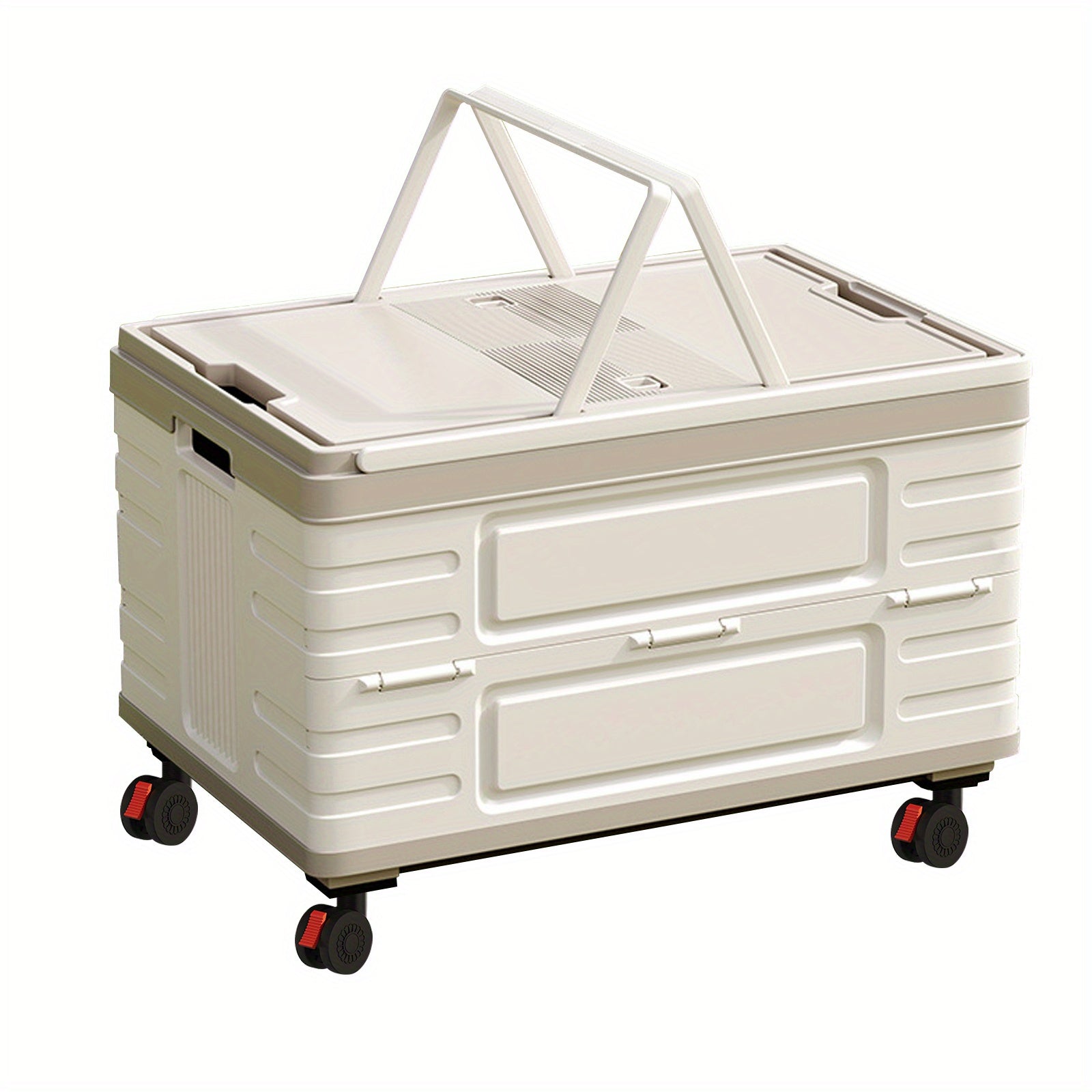 Keep your camping adventures organized with this 60L heavy-duty collapsible storage crate—the ultimate companion for any outdoor expedition! Packed with ample space for gear, snacks, and essentials, it features dual folding handles, a convenient long handle, and four swivel wheels that glide effortlessly across any terrain. Built from thick, durable plastic that won't buckle under pressure, this clever crate stacks neatly to maximize your setup space and folds flat when the adventure's over. Whether you're heading to the campsite, fishing trip, or weekend getaway, this versatile storage solution keeps everything within reach and ready to roll!