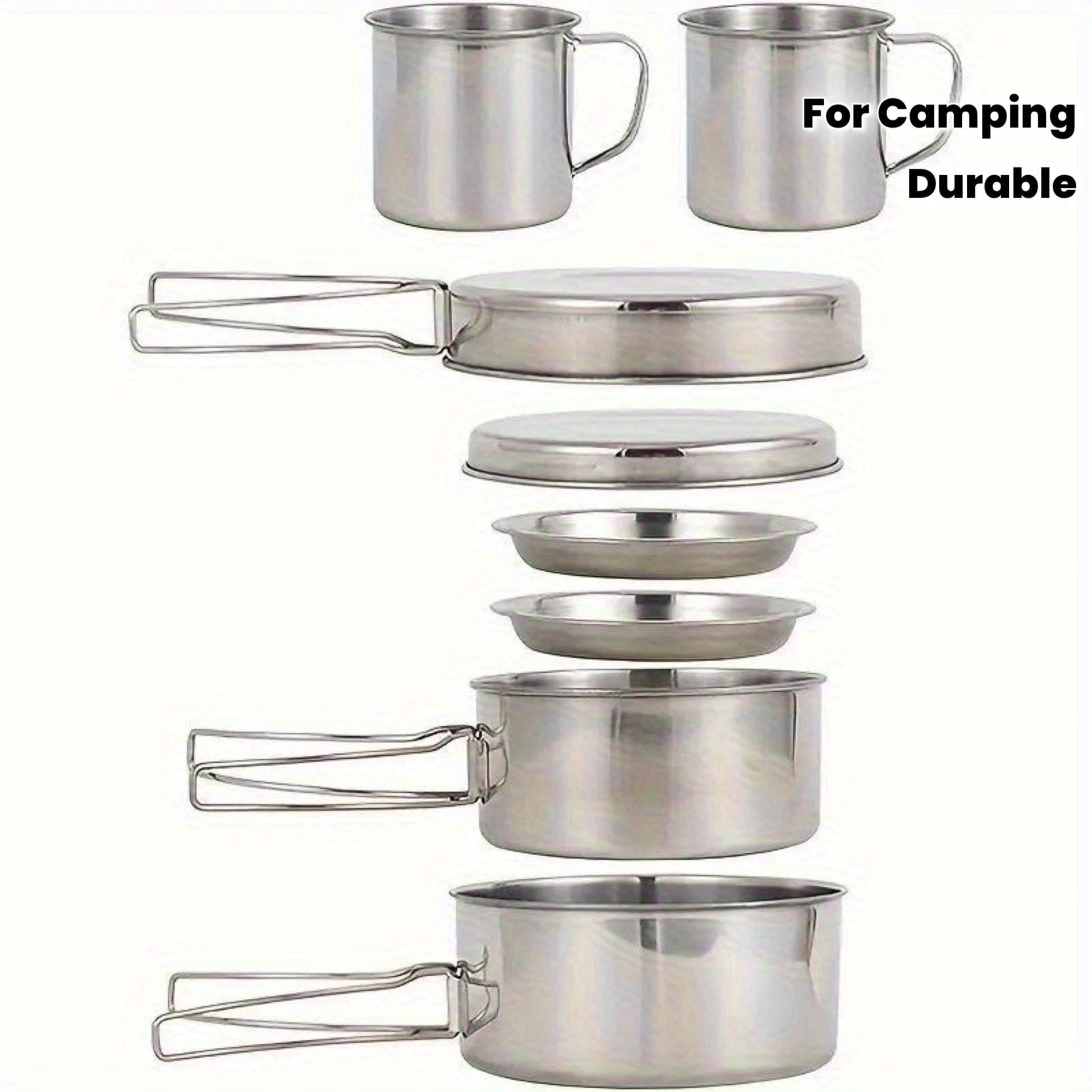 8pcs Stainless Steel Camping Cookware Set with Pots and Pans, Plates & Cups