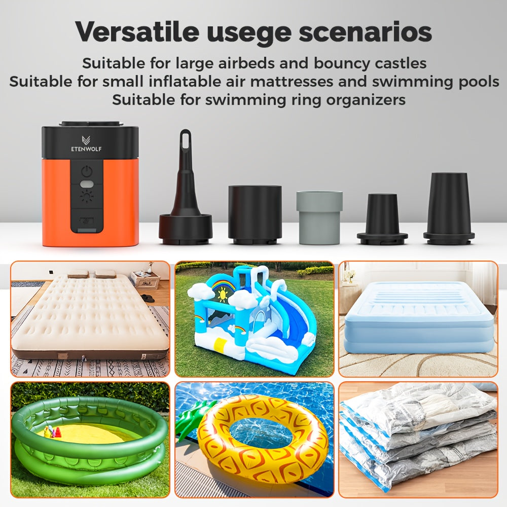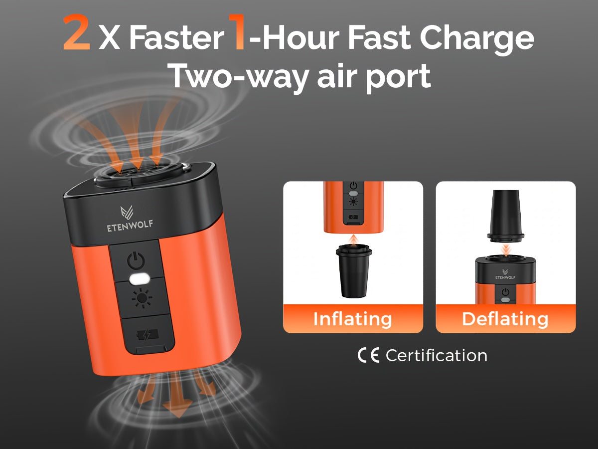 Forget the lung-busting days of manual inflation! The ETENWOLF AIR3 is your camping sidekick, pumping up sleeping pads, air mattresses, swim rings, and pool floats at lightning speed with its impressive 360L/M inflation rate. Powered by a robust 2600mAh battery, this compact electric pump handles everything from cosy camp beds to backyard pool parties. Whether you're setting up basecamp or prepping for water adventures, the AIR3 does the heavy lifting so you can focus on the fun. Lightweight, rechargeable, and ready for action—because great camping starts with properly inflated gear.