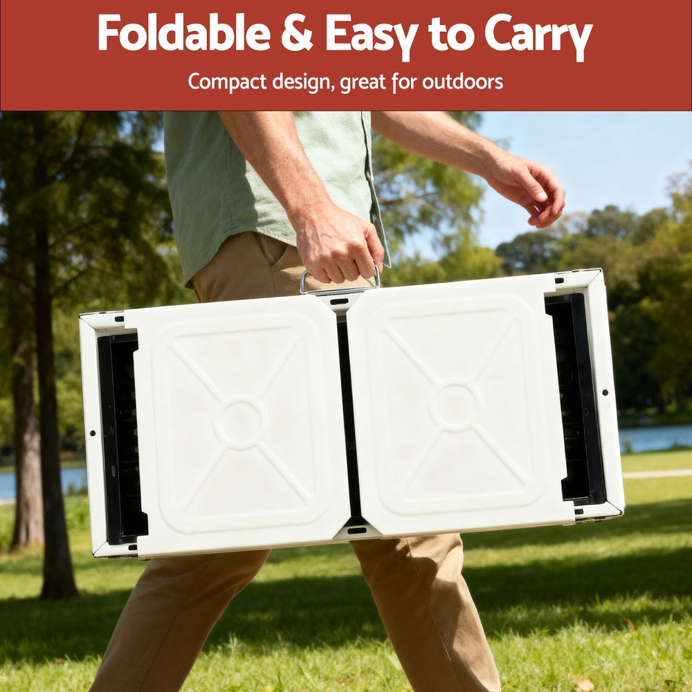 Enjoy hassle-free outdoor cooking with the Grillz Foldable Charcoal BBQ Grill, perfect for camping, picnics, gardens, or backyard gatherings. This compact yet spacious grill features a stainless steel griddle and two enamel grilling plates, allowing you to cook a variety of foods at once. Designed for tabletop or freestanding use, it includes a central storage rack and extra tray for seasonings, keeping everything within reach. The removable carbon tank with ventilation holes ensures even burning and makes cleanup effortless. Its foldable design make it easy to transport and store, with 2 bonus clip: one for adding charcoal during cooking, one for barbecue cooking. Durable carbon steel construction ensures long-lasting use for all your outdoor barbecue adventures.