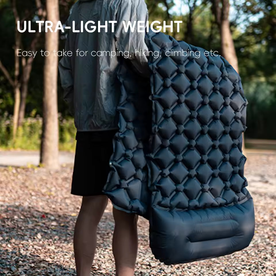 Sleep like you're glamping, not roughing it! This inflatable air mattress brings comfort to your campsite with an integrated pillow that cradles your head just right. Built for adventure, it's lightweight and compact enough to toss in your pack, yet sturdy enough to handle nights under the stars. Inflate it in seconds, deflate it just as fast, and you've got yourself a cosy sleeping setup that won't weigh you down. Perfect for camping trips, festivals, or unexpected sleepovers—comfort on your terms, wherever you roam.