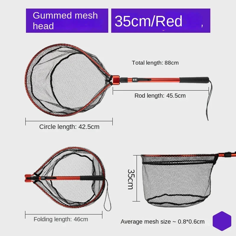 Folding Landing Net- Rubber/Silicone Mesh - 14kg load bearing