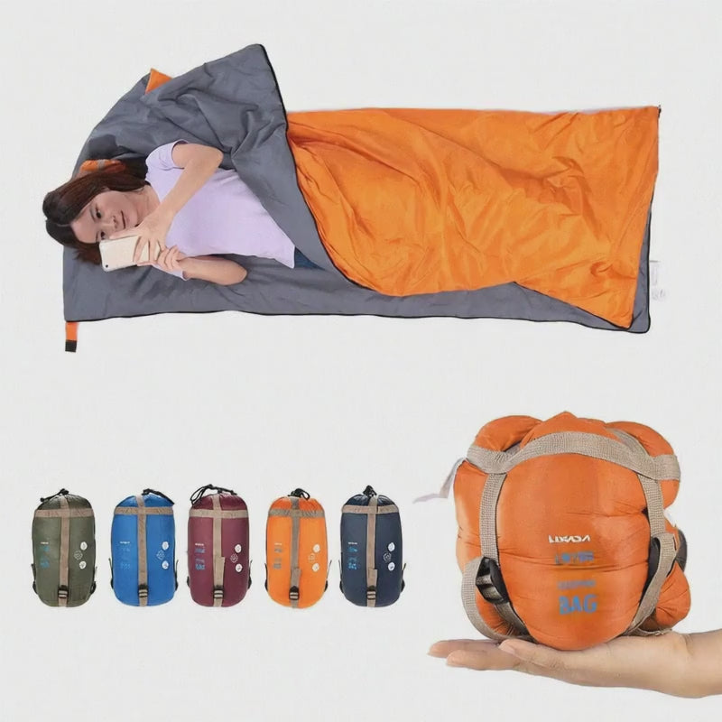 Ready for your next adventure? Our Adult Camping Sleeping Bag with compression stuff sack packs down small for easy travel. Unfold it for cozy warmth or use it as a blanket on chilly nights. Plus, connect two bags to create a comfy double sleeping bag—perfect for sharing campfire stories and stargazing with a friend!