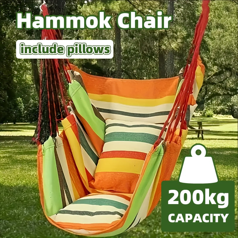 Kick back and relax anywhere with this versatile hanging chair! Whether you're lounging in the garden, chilling on your balcony, or setting up camp in the great outdoors, this portable hammock swings into action. Comes complete with two plush pillows for extra comfort, and it's built tough to support up to 200kg. Installation is a breeze—no fuss, no stress—making it perfect for dorms, bedrooms, or your next camping adventure. Lightweight and easy to transport, your new favourite spot awaits!