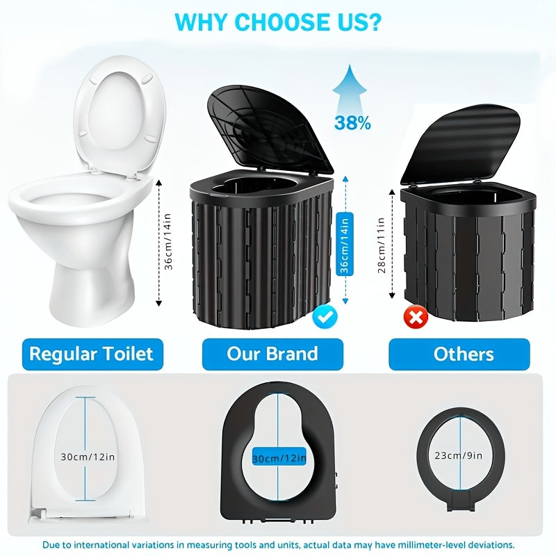 Portable Toilet, Upgraded 12-inch Toilet Seat, Folding with Removable Paper Holder
