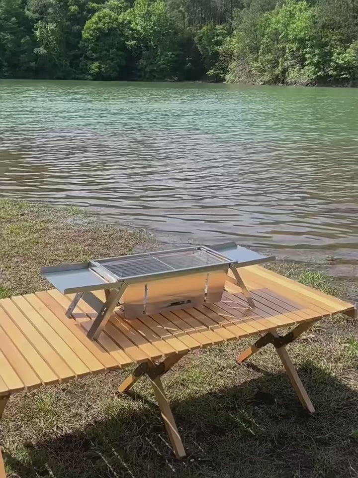 Stainless steel folding barbecue grill for home and outdoor use, perfect for charcoal kebabs. Smokeless, portable, and collapsible for easy convenience.