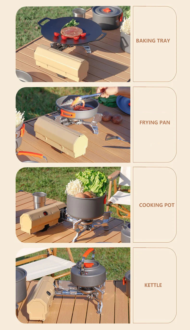 Cook up a storm wherever your adventures take you! This compact 2600w gas burner folds flat for easy packing and deploys in seconds when hunger strikes. Simply attach a standard camping cassette canister, ignite the burner, and you're ready to whip up hot meals, brew coffee, or boil water at the campsite or trailhead. Lightweight and durable, it's the perfect companion for campers and hikers who refuse to compromise on campfire cuisine. Adventure tastes better when you're in control of the heat!