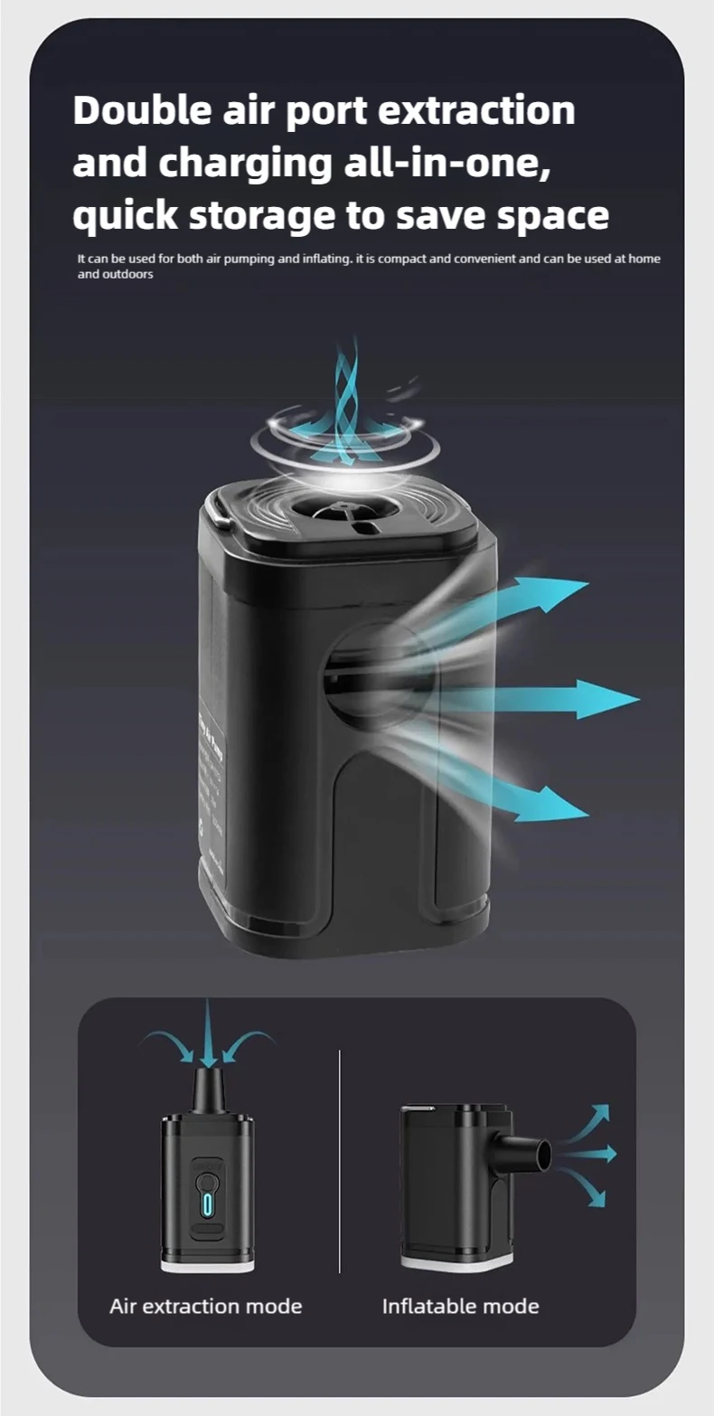 Dual Modes: Inflate (car tires, airbeds) + deflate (vacuum bags, saving 50% space).