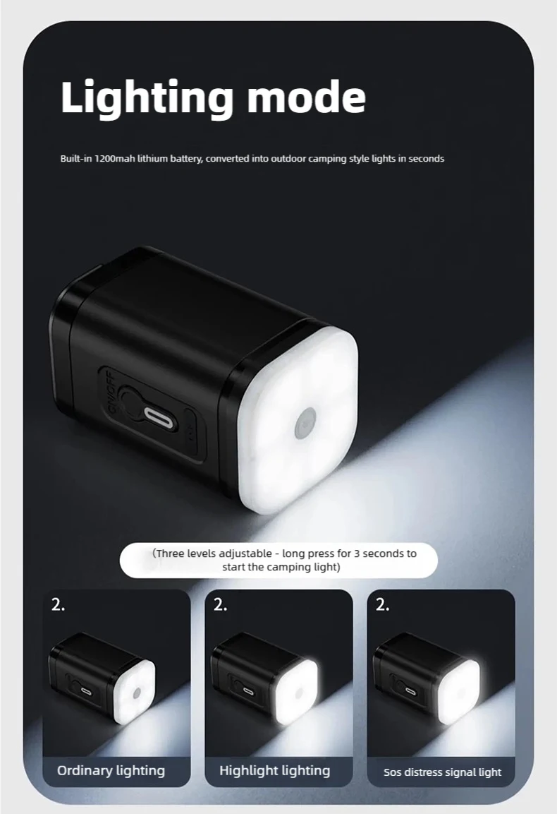 3-in-1 Camping Light: Normal/High light + SOS signal for emergencies.