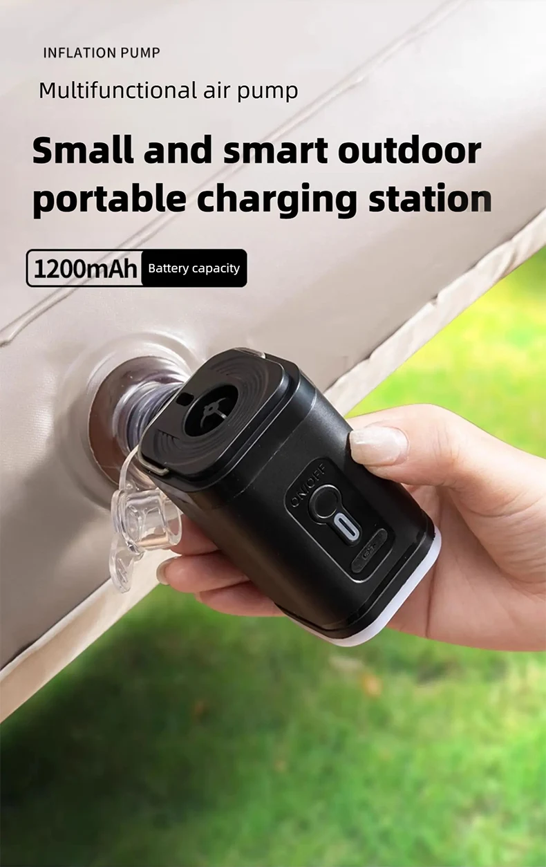Portable Air Pump - 2-in-1 Inflation/Deflation, 1200mAh Real Battery & Camping Light